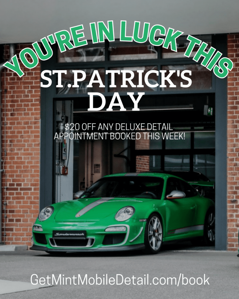 It’s your 🍀 lucky day! $20 off any deluxe detail (or higher) package. Book online anytime at www.GetMintMobileDetail.com/book